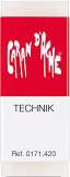 Гумата Technik от Caran d'Ache е незаменим инструмент за техническо чертане, заедно с твърди графитни моливи и твърда хартия за рисуване. Тя е изработена от твърд, неабразивен материал без фталат. Има активно почистващ филм и нежно изтрива ненужното от рисунката, без да уврежда листа. Какво е фталат: Фталовата киселина е вещество, което се добавя към пластмасата, за да увеличи нейната гъвкавост, прозрачност, издръжливост и дълголетие. ...