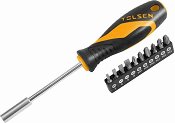 Комплектът на Tolsen от серията GRIPro е предназначен за завиване и развиване на болтове и винтове. Съдържа отвертка 1/4″ x 100 mm, 10 бита със захват 1/4" шестостен (HEX) x 25 mm и адаптер и са изработени от хром-ванадиева стомана за висока издръжливост и здравина. Размер на битовете: SL4 SL5 SL6 PH1 PH2 PH3 PZ1 PZ2 PZ3 ... |