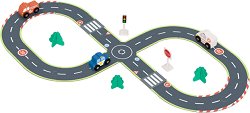 Пистата от Hi Pando е чудесна сцена за игра, в която всяка количка може да намери своя път, завой и паркомясто. Свързващите се пътни участъци позволяват сглобяване като пъзел и дават свобода за непрекъснато нови маршрути и градски планировки. Дървените колички са удобни за хващане от малките ръчички, а сградите и аксесоарите - като дървета, пътни знаци и светофар - добавят настроение и правят играта още по-жива и реалистична. Докато строят улици, измислят посоки и организират трафика в своя град, децата развиват въображение, мислене и координация, учат се да разпознават елементи от градската среда и сами създават свои ... |