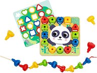 Дървената мозайка и игра за нанизване от Hi Pando е създадена за малките любопитковци, които обичат да подреждат, съчетават и опитват нещо ново отново и отново. С усмихнатата панда на основната дъска и ярките цветни елементи, играта бързо привлича вниманието и превръща ученето в приятно приключение. В комплекта детето ще открие различни по форма фигури - триъгълник, кръг, квадрат, сърце и шестоъгълник - проектирани да бъдат лесни за хващане и напълно подходящи за малките ръце. Играта дава възможност за сортиране по форма или цвят, както и за нанизване с помощта на шнурчето, което превръща обикновените фигурки в първи ... |