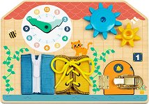 Активната дървена дъска от Hi Pando Къща с часовник е създадена за малките изследователи, които искат да пипнат, завъртят, отворят и разберат как работи всичко около тях. Тази многофункционална играчка предлага куп малки детайли, които привличат вниманието и поставят детските пръстчета пред интересни предизвикателства. С формата на къщичка и занимания от всички страни, бизибордът включва работещ часовник, ципове, бравички, зъбни колела и разнообразни текстури, които подканят към игра, експерименти и нови открития. Докато се забавляват, децата неусетно развиват фина моторика, координация, сръчност, логика и умения от ... |