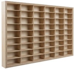 Дървеният рафт от Iso Trade разполага с 54 отделения за подреждане на колекция от колички. Преградите са изработени от 3 mm шперплат и могат да се премахват или пренареждат, за да създадете собствени размери на отделенията според нуждите ви. Рафтът е предназначен за стенен монтаж, но може да се постави и върху скрин или бюро. В комплекта са включени комплект за монтаж и две кукички за стена. Размери на отделенията: 9.4 / 5 / 4 cm. Размери на рафта: 60 / 40 / 5.3 cm. ... |